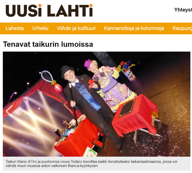 "It has been a pleasure for me to have known my compatriot the talented magician Mano d’Oro. His performances are absolutely captivating. The exhibition in Lohja Museum was extremely interesting both for adults and children. Intriguing and fabulous – in one word … magic!