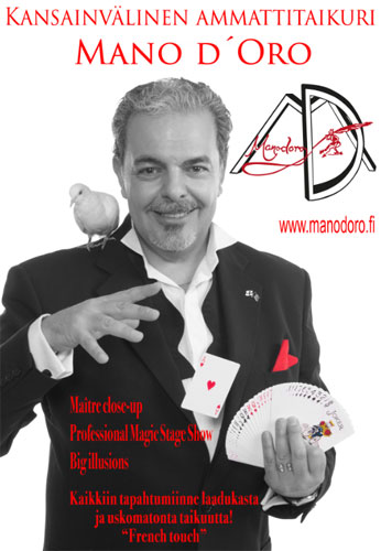 Taikuri Mano d’Oro tarjoaa henkilökohtaisia elämyksiä lapsille ja aikuisille. Voit tilata kokeneen, uusiutuvan ja innovatiivisen taikurin viihdyttämään lähitaikuudella, jossa taikuri tekee taikatemppuja yleisön parissa, tai järjestää näyttävän taikashown suurella lavalla.